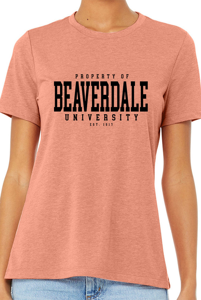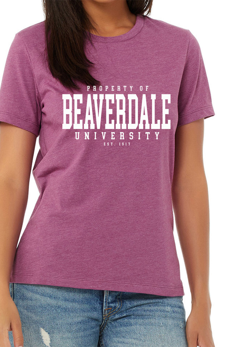 "Property of Beaverdale University" - Ladies' Relaxed Heather CVC Short-Sleeve T-Shirt