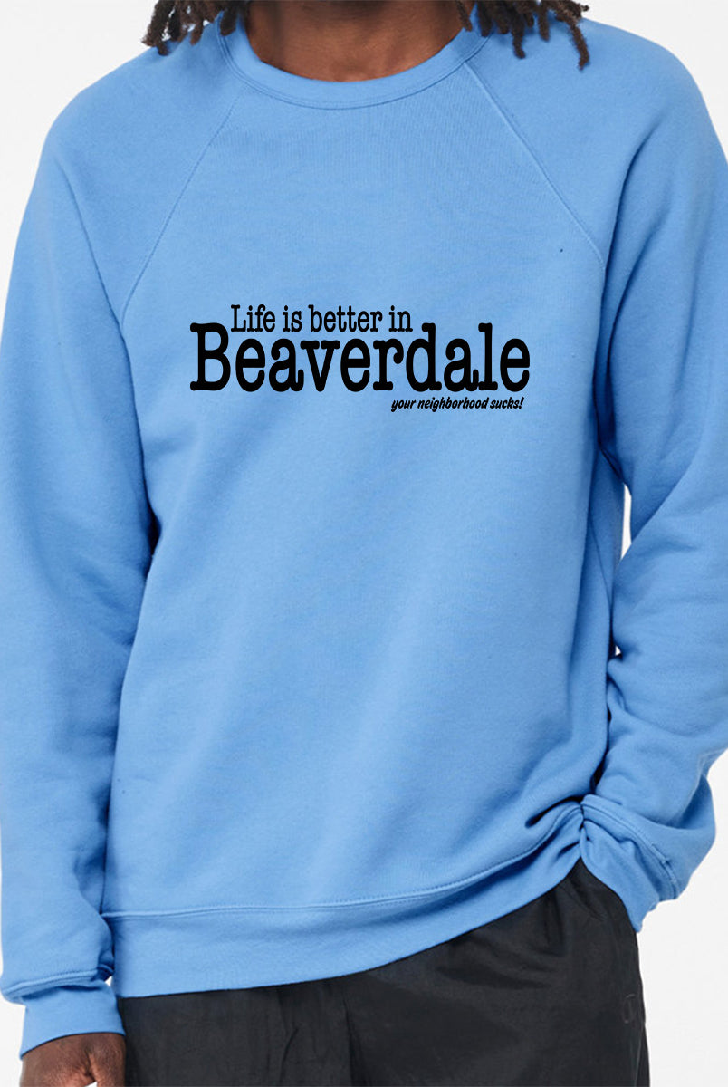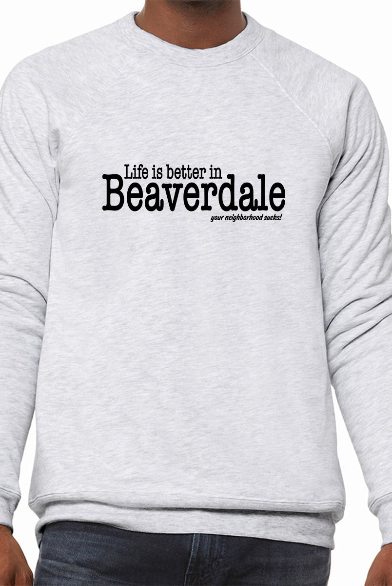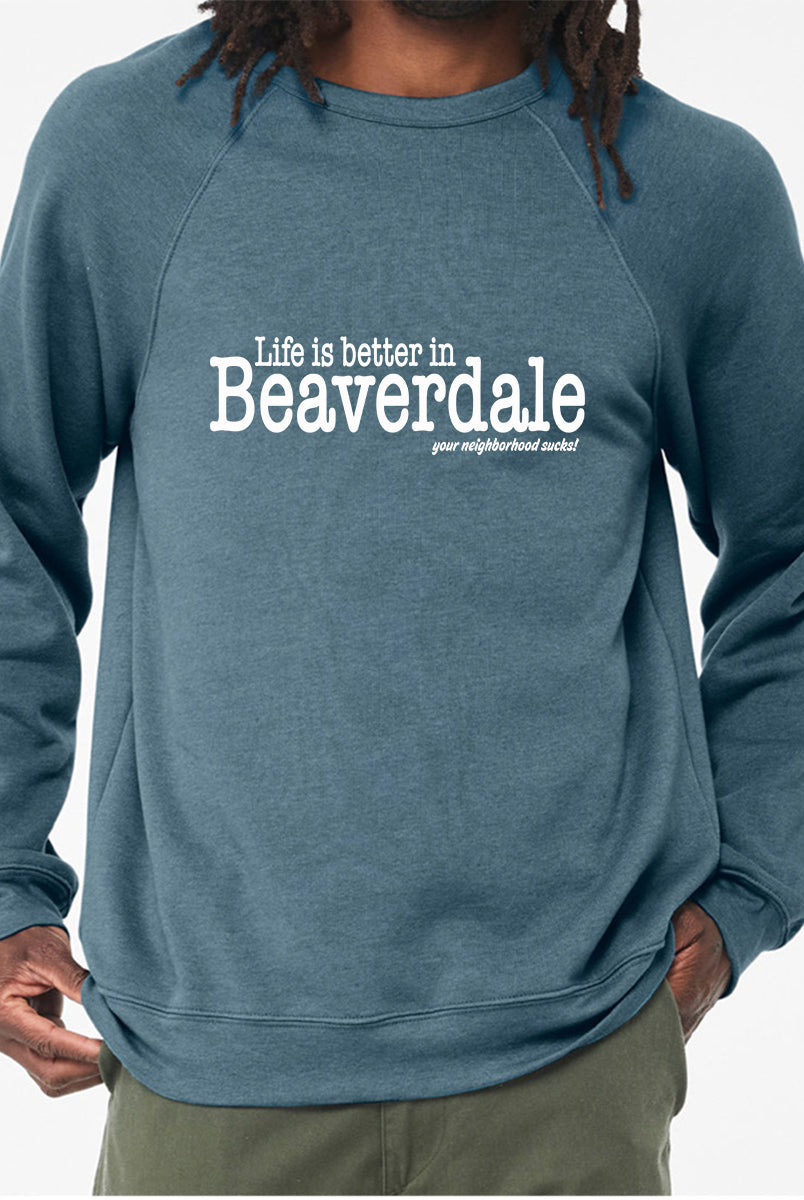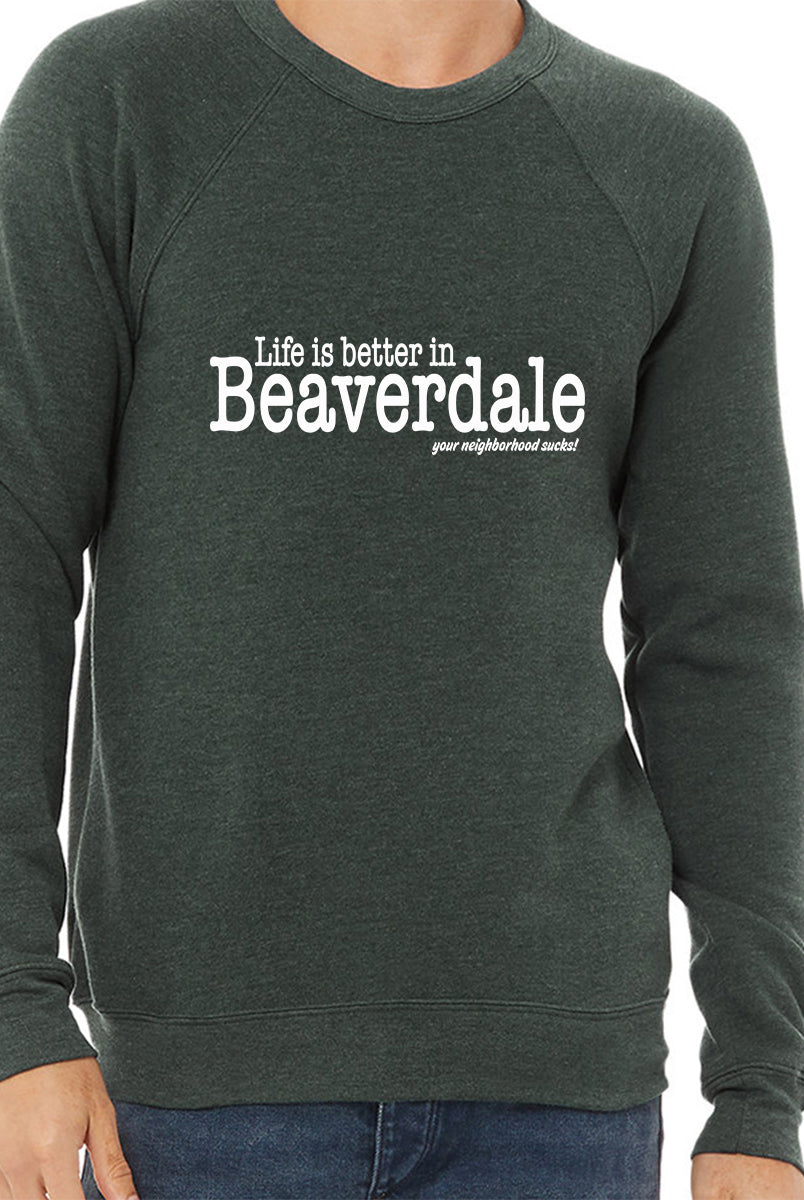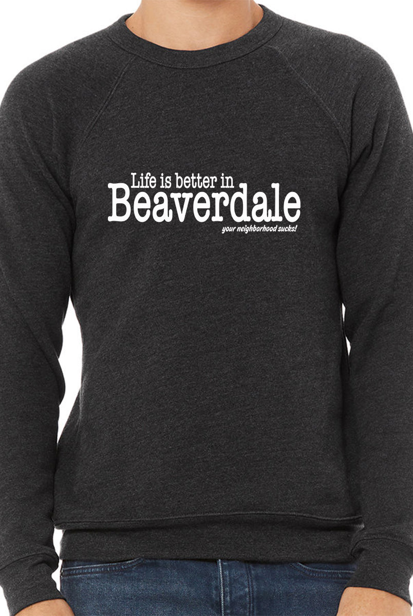 "Life is better in Beaverdale, your neighborhood sucks" - Unisex Sponge Fleece Crewneck Sweatshirt