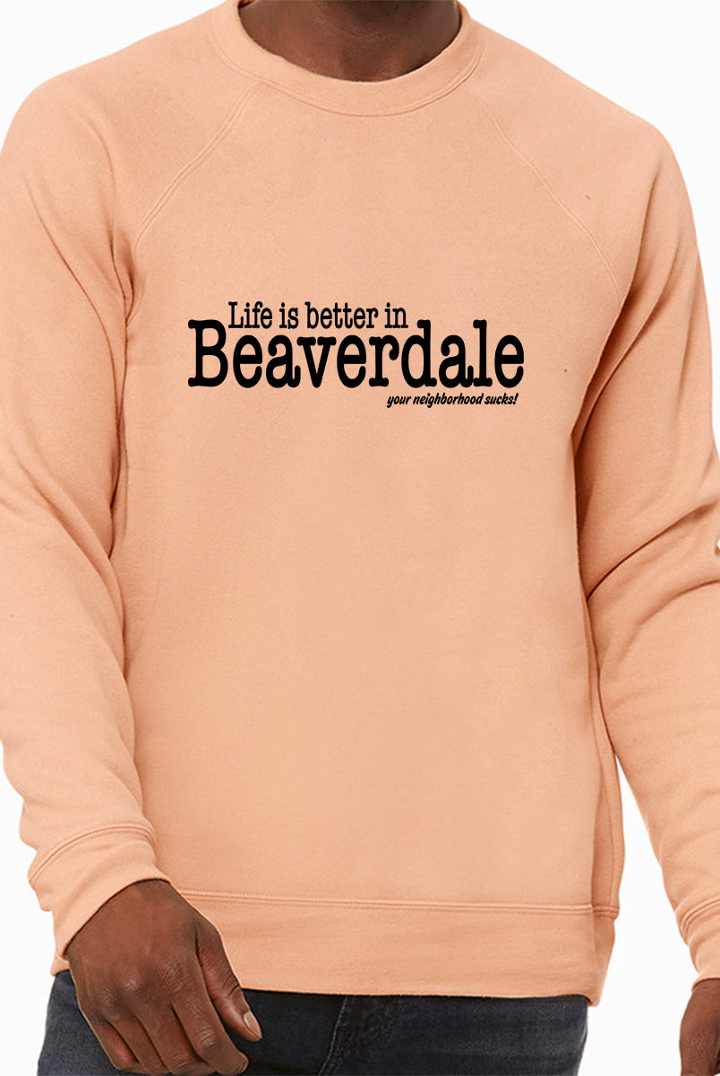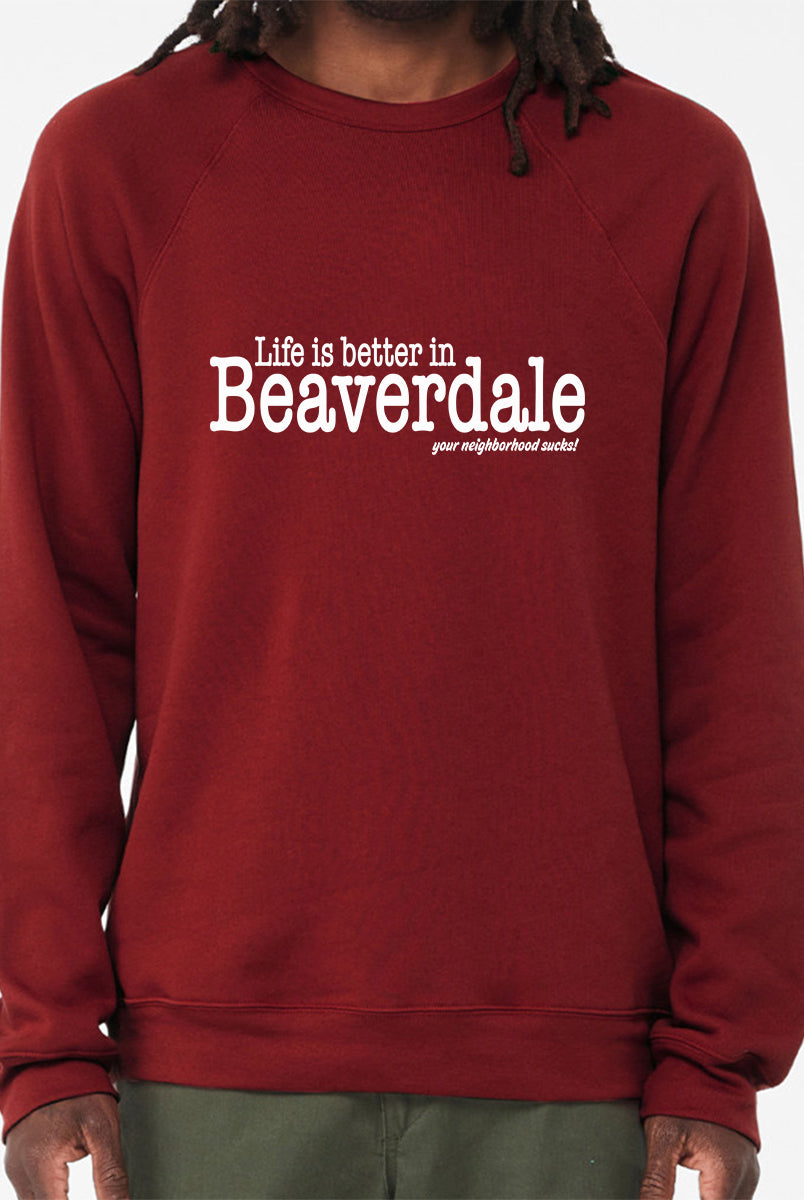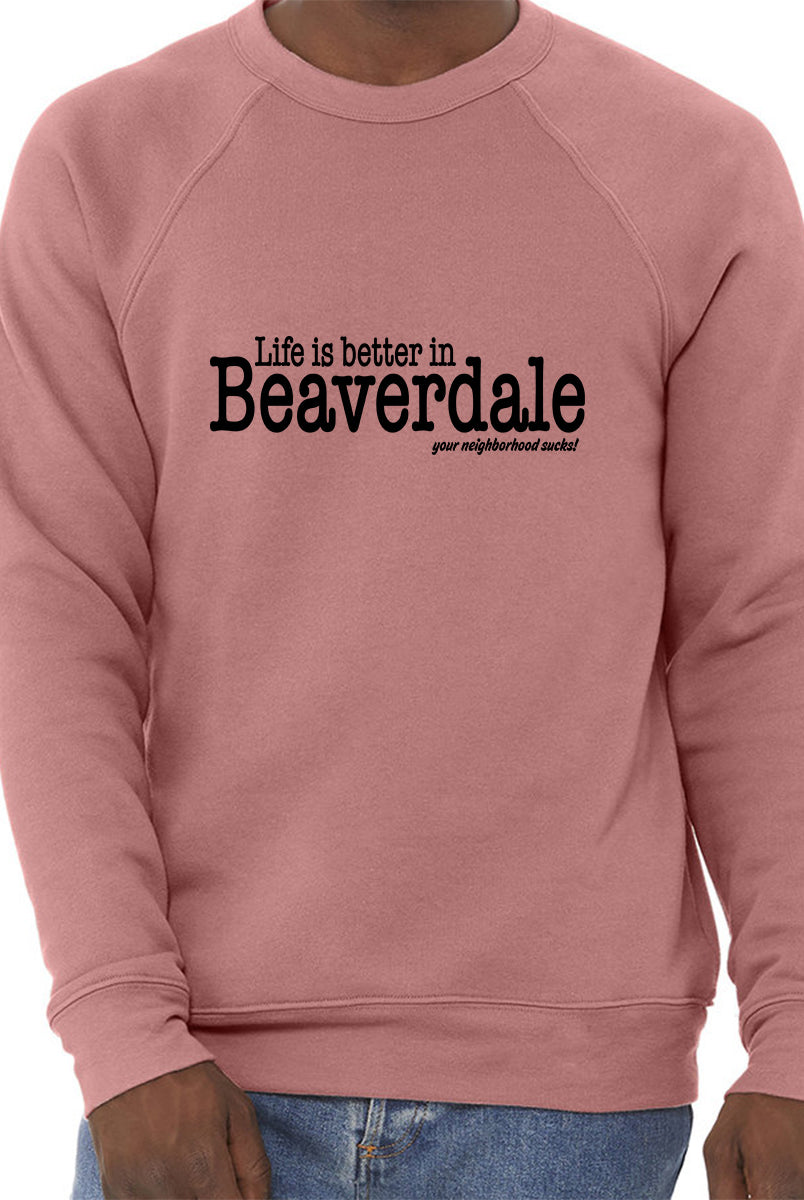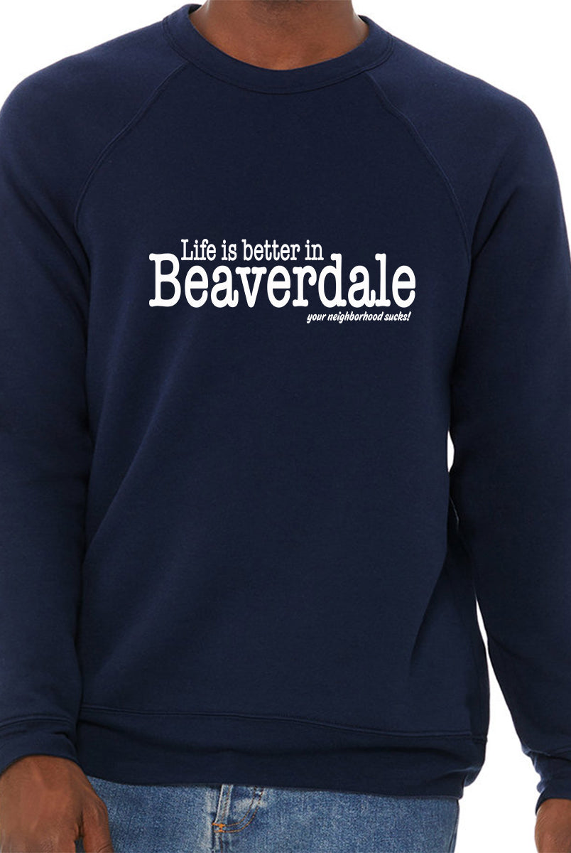 "Life is better in Beaverdale, your neighborhood sucks" - Unisex Sponge Fleece Crewneck Sweatshirt