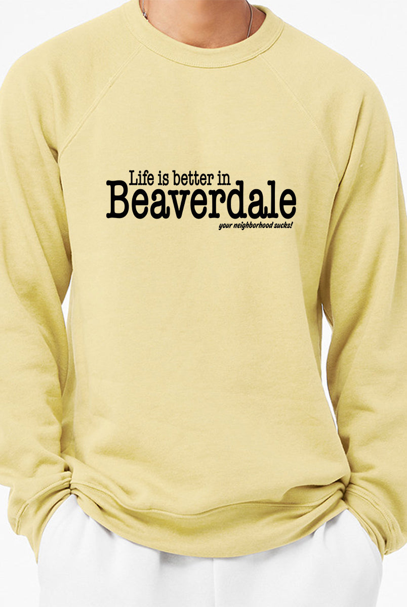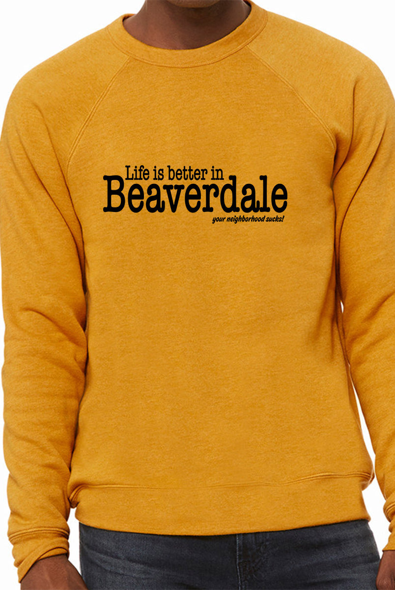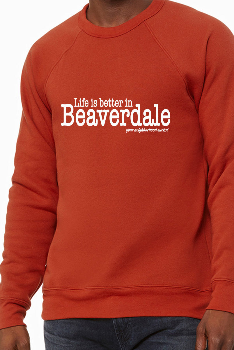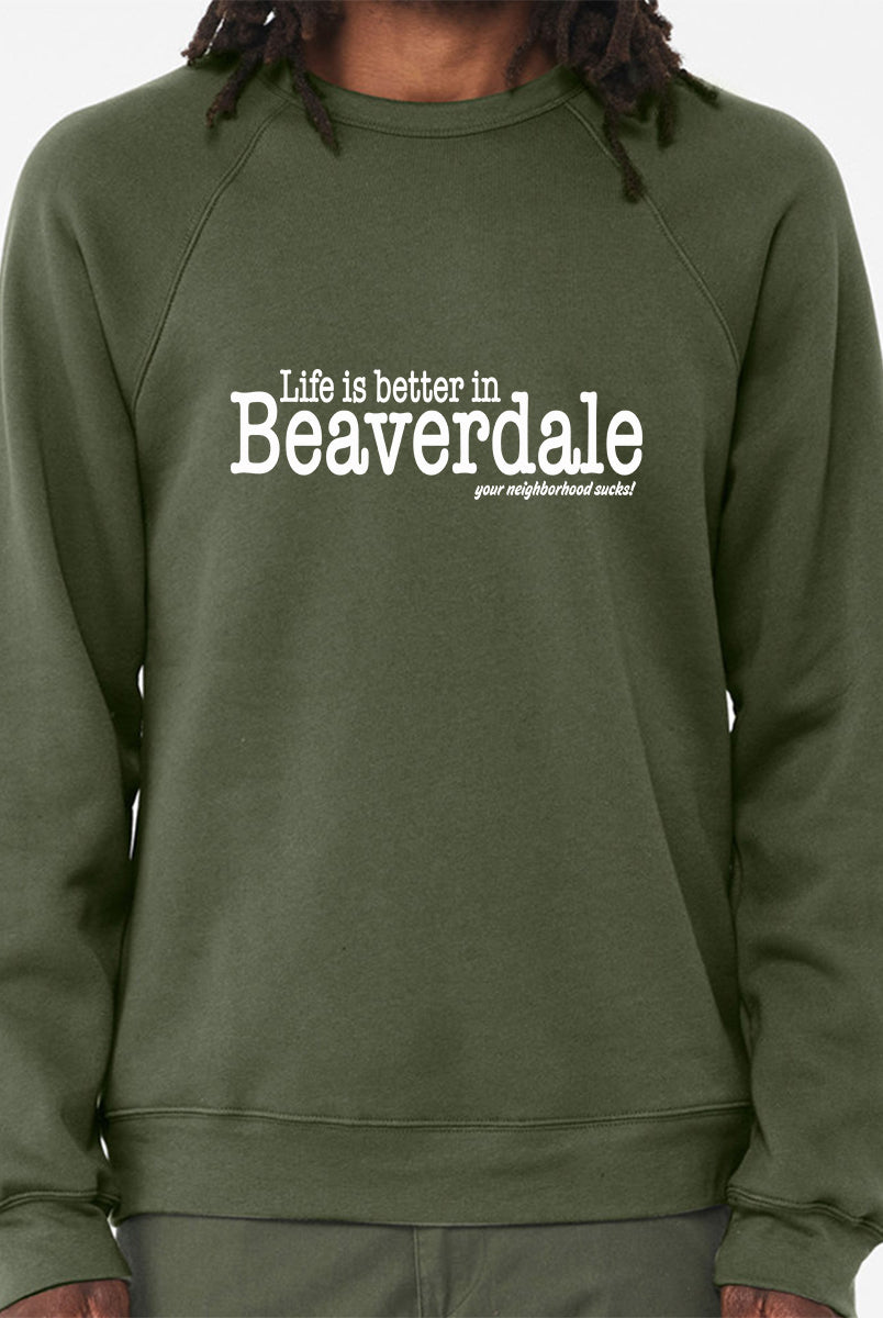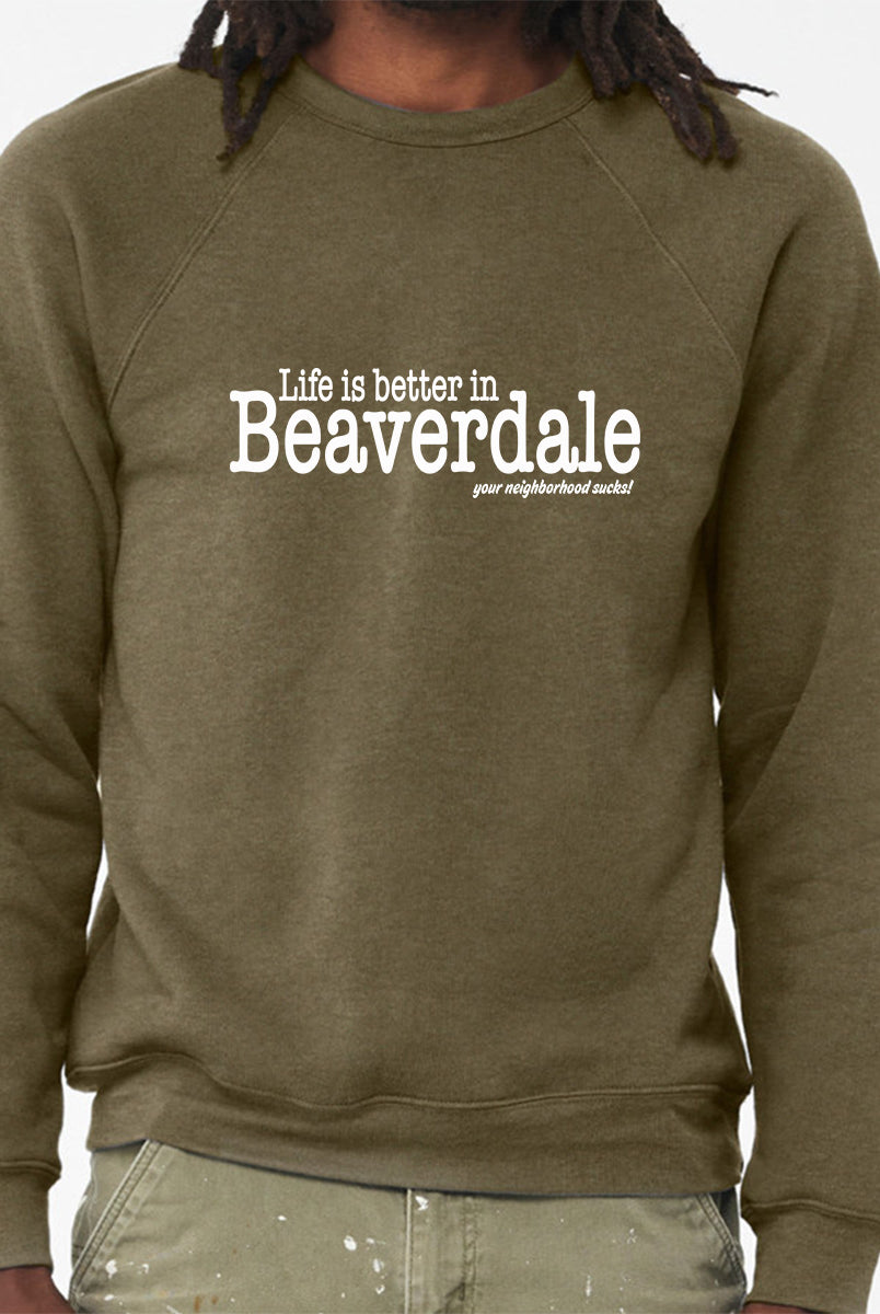 "Life is better in Beaverdale, your neighborhood sucks" - Unisex Sponge Fleece Crewneck Sweatshirt
