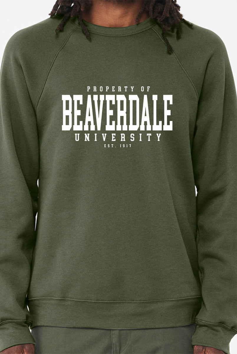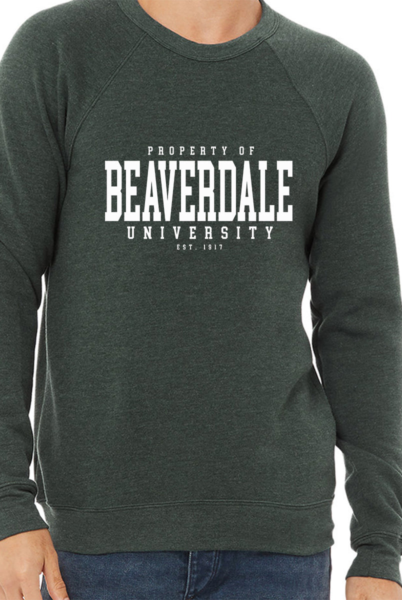 "Property of Beaverdale University" - Unisex Sponge Fleece Crewneck Sweatshirt