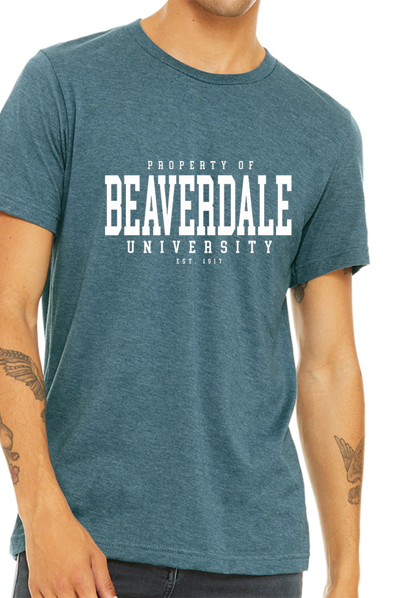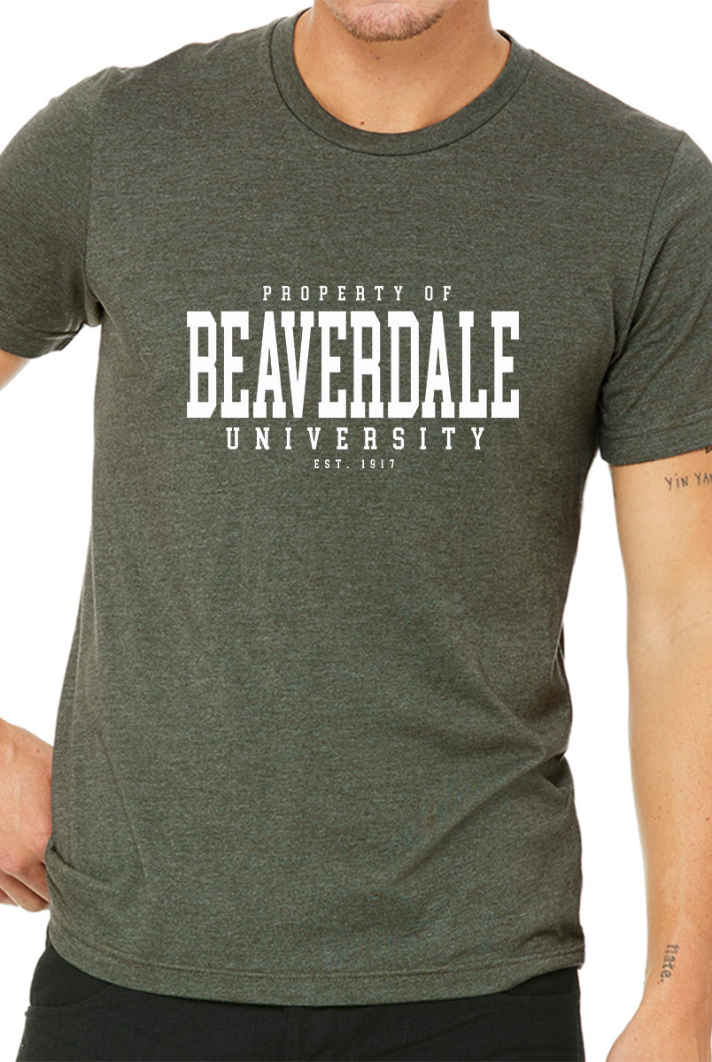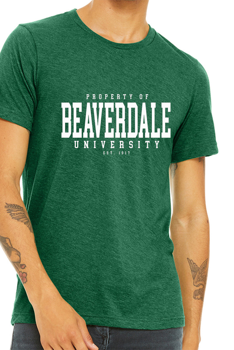 "Property of Beaverdale University" - Unisex Heather CVC T-Shirt